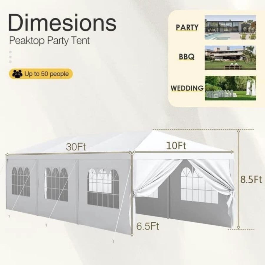 10'X30' White Frame Tent With Side Walls — Shade, Space & Smiles 🎪☀️
