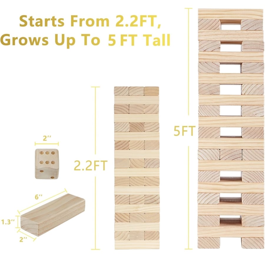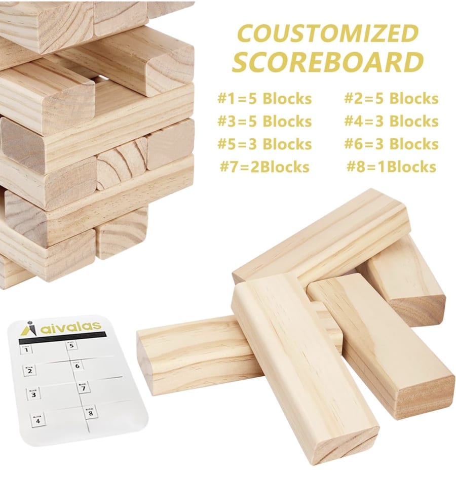 Bring big fun to any gathering with the Giant Tumbling Tower Wooden Block Stacking Game. Build stacks up to 5 feet tall and test steady hands and nerves. Perfect for Birthday Parties, Family Reunions, graduations, church events, and corporate celebrations. Fast setup. Durable wood. Instant excitement. 🎉