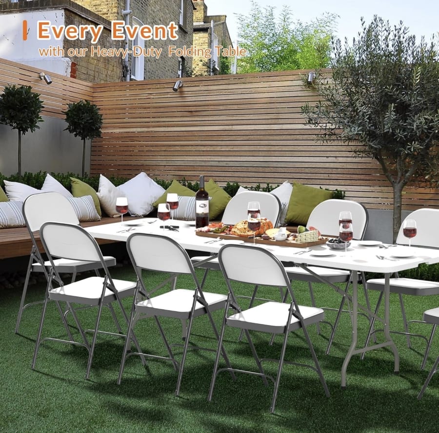 8 Ft. White Plastic Folding Table — Room for Everyone! 🎉