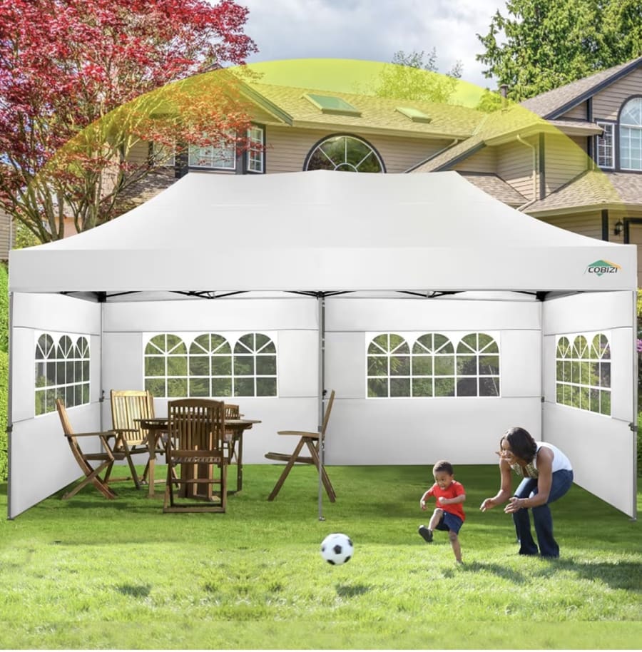 Sunny day? Grill sizzling? Kids enjoying one of our awesome waterslide. 🌞 Keep the party cool, dry and picture-perfect with our 10'X20' White Pop Up Tent With Side Walls. This roomy shelter turns a backyard, park or church lawn into a cozy event hub—no stress, just shade and smiles. πŸ˜„